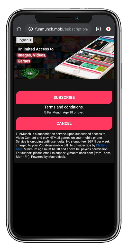 Operator:Vodafone, orange Country: Egypt URL: http://funmunch.mobi/subscription/eg
