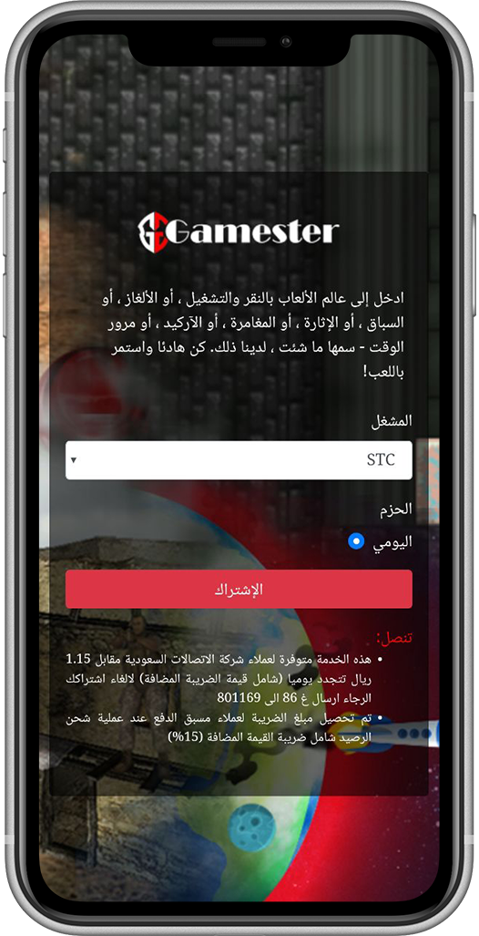 Operator:STC Zain Country: Saudi arabia URL: http://ksagamester.clicknplay24.com/subscription