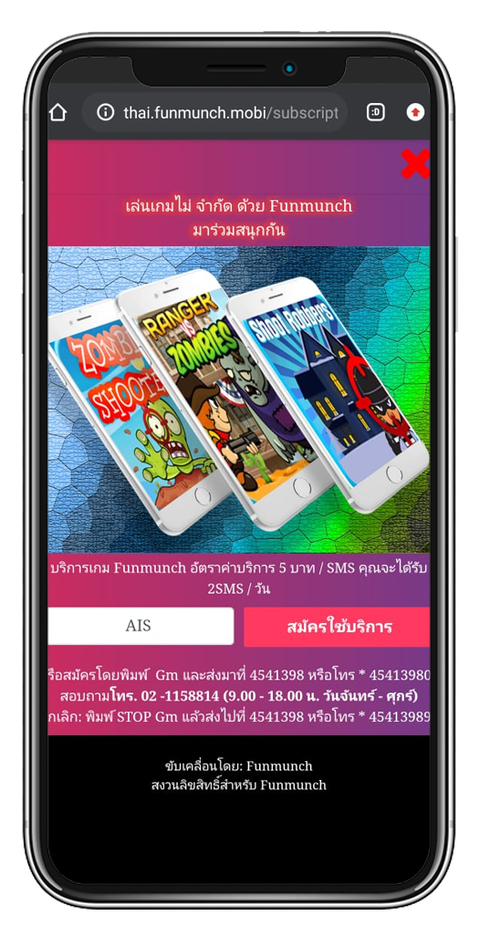 Operator:AIS Country: Thailand URL: http://thwall.funmunch.mobi/subscription/SG